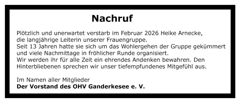 Die Frauengruppe des Orts – und Heimatvereins Ganderkesee wurde im März 1979 auf Initiative von Frau Helga Warfelmann gegründet. Die Treffen fanden im AWO Haus an der Rathausstrasse statt. Nachdem die Gruppe wuchs und die Räume zu klein wurden, zog die Gruppe in die Begegnungs-stätte im Sonnenwinkel um. Danach fand die Gruppe einige Jahre im Schützenhof Unterkunft, heute treffen sich die Mitglieder im Oldenburger Hof. Die Gruppe mit einer Größe von 25-30 aktiven Frauen trifft sich zum Kaffeeklatsch, Singen und Spielen. Zu den festen Bestandteilen des Jahres gehören ein Grünkohlessen, ein Ausflug, evtl. eine Besichtigung oder ein Vortrag, je nach Wünschen und Interessen der Frauen in der Gruppe.